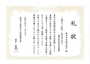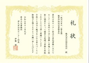 神奈川県厚木土木事務所より礼状を授与されました新着!!